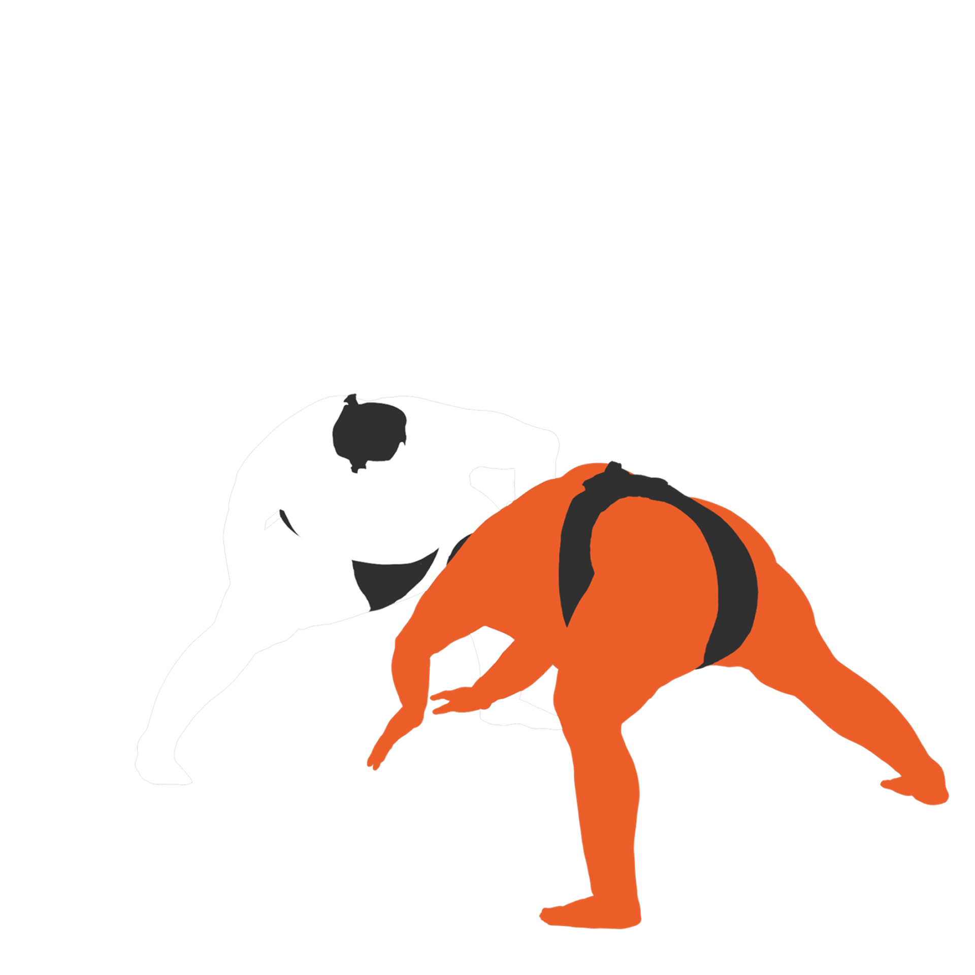 YoritaoshiPressing in closely, the rikishi drives forward and leans to crush the opponent down at the edge.