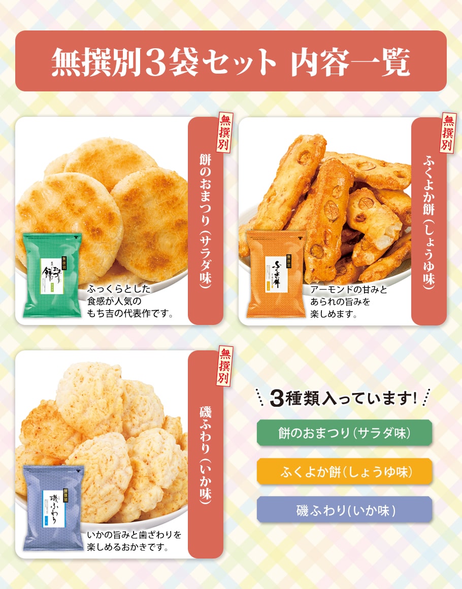 【通販限定】できたての商品をそのまま袋詰め♪大人気無撰別3袋セット!