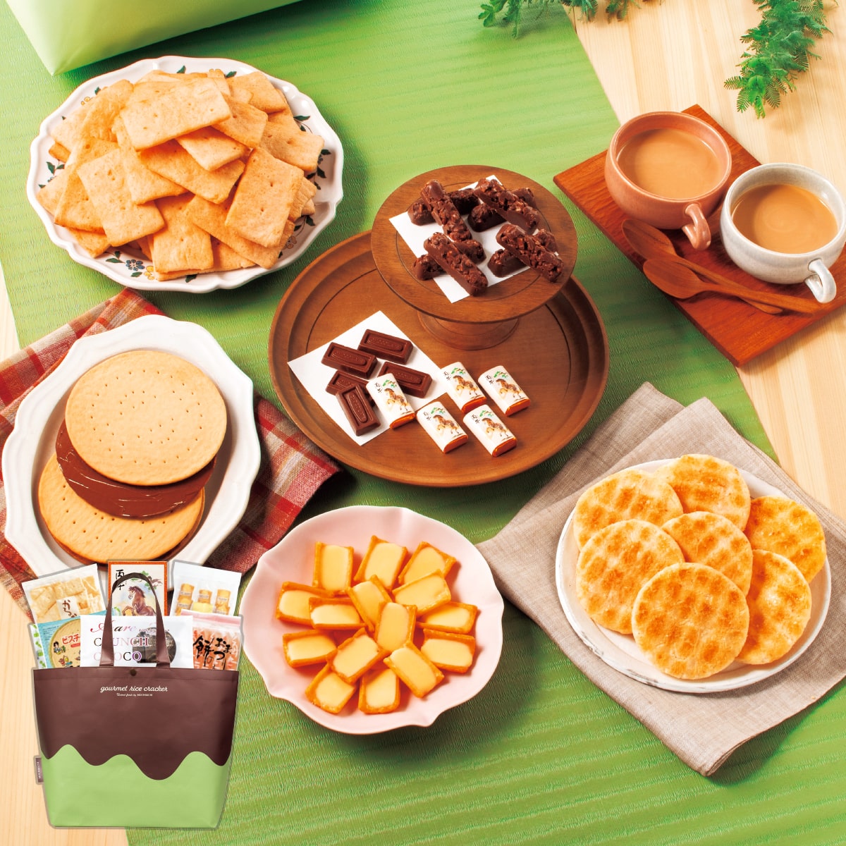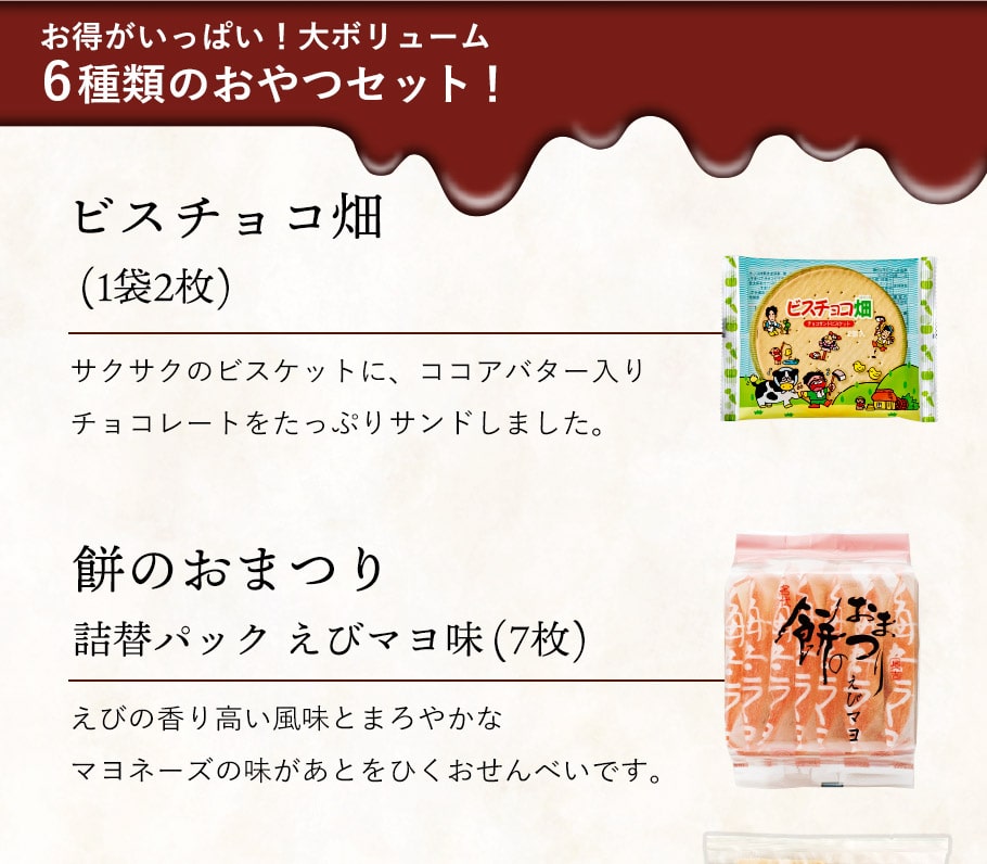 かわいいデザインのバッグにお菓子をいっぱい詰め込んだ、嬉しいボリューム6種類のおやつセット♪