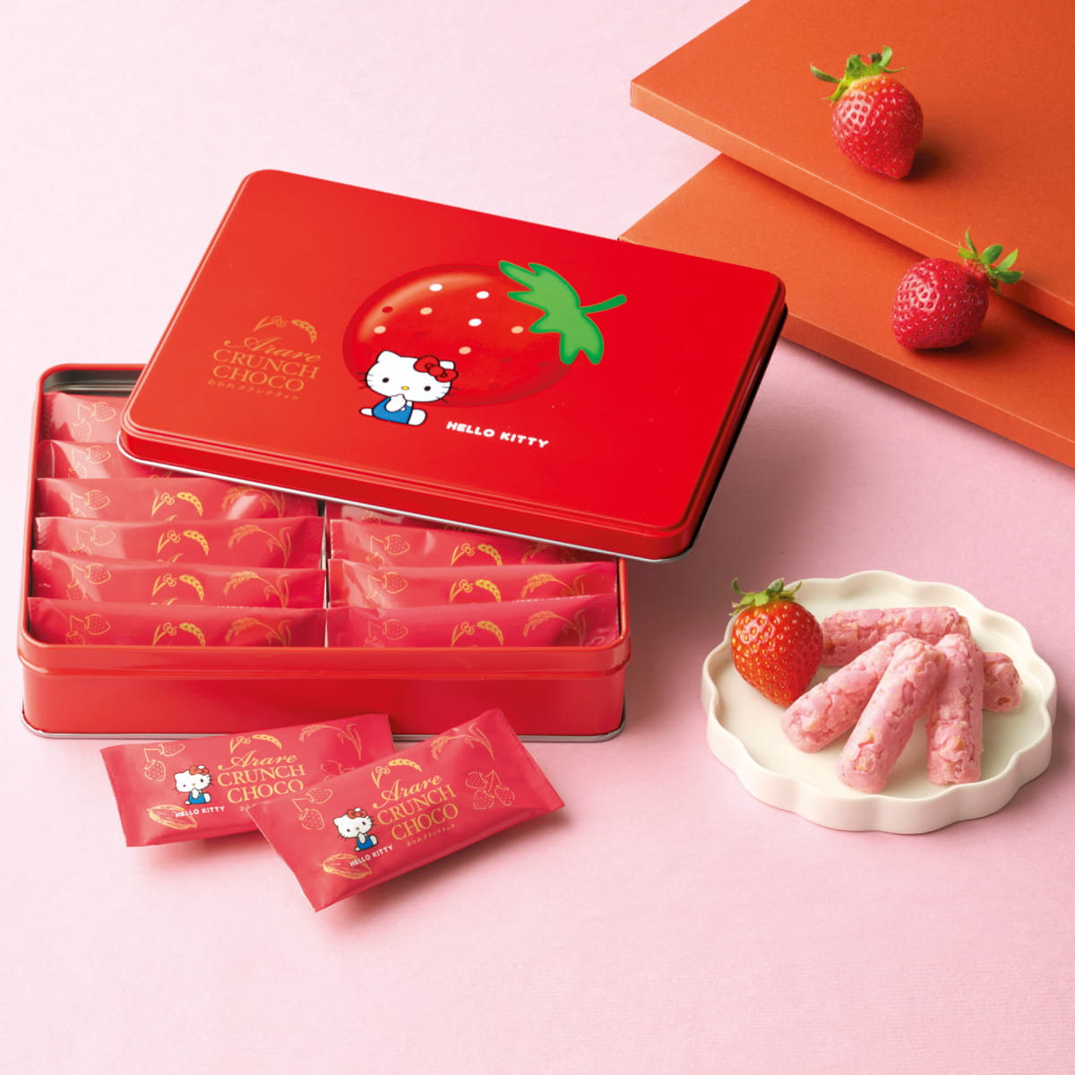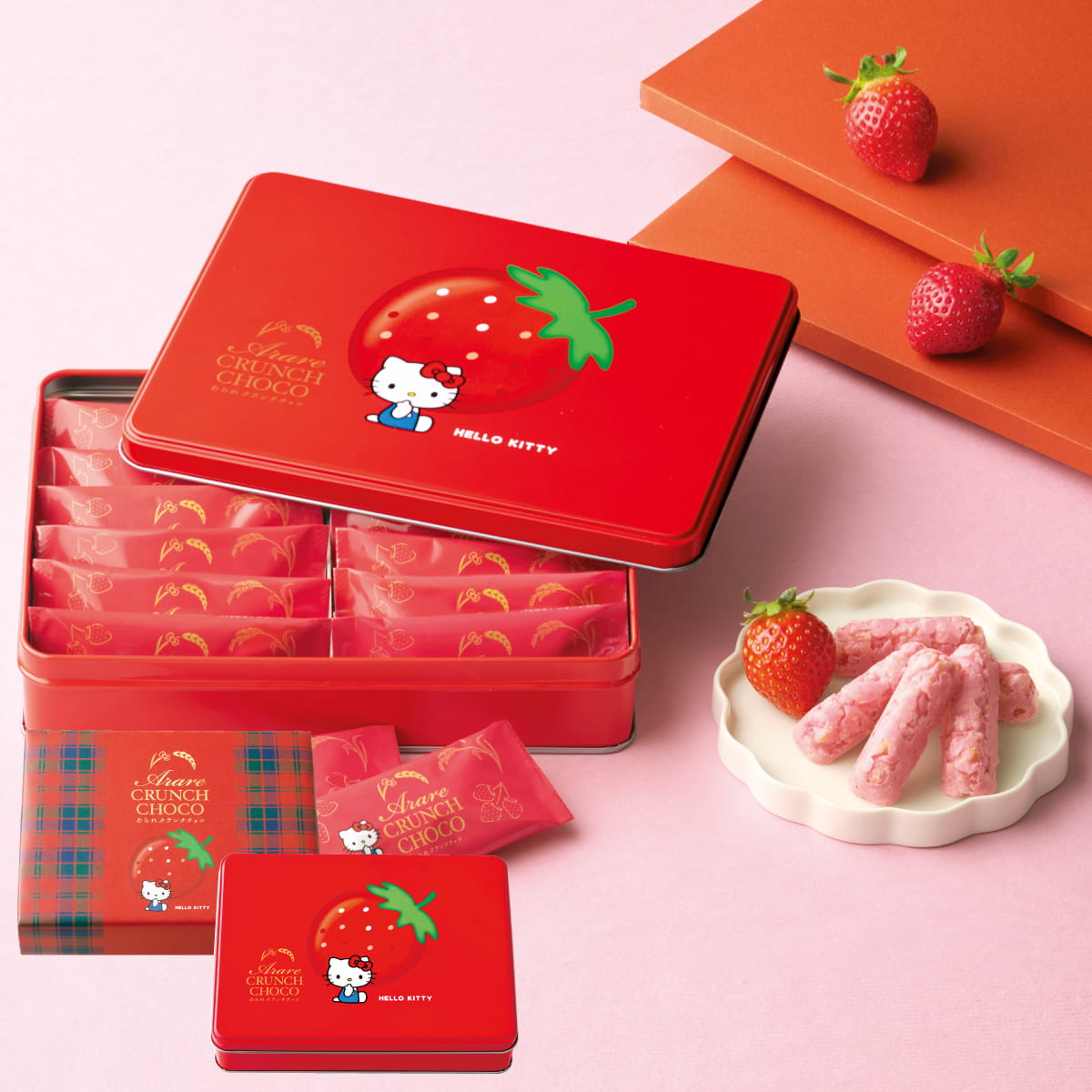 (※期日指定4月9日まで)あられクランチチョコ いちご味 ハローキティ 缶
