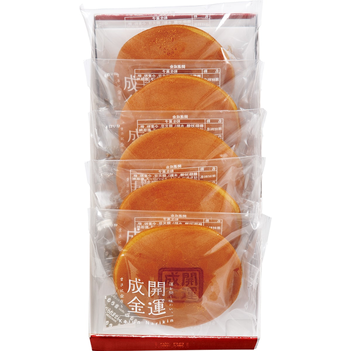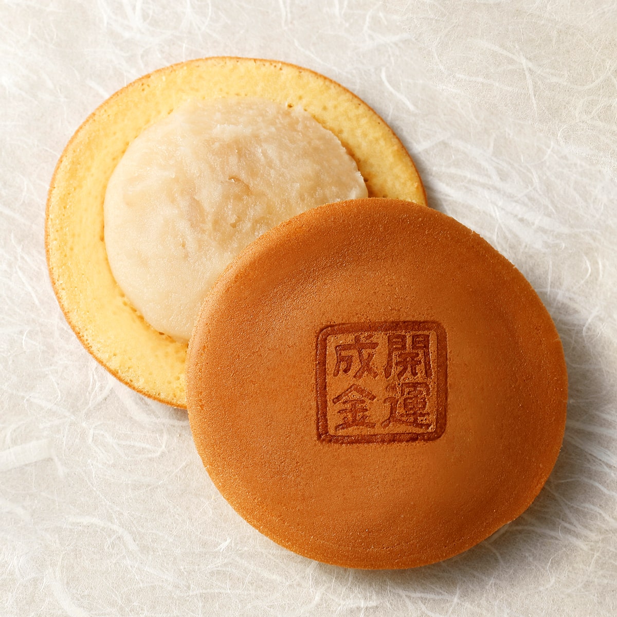 すべての方々に良い運が開けるように、おいしいどら焼き風「開運成金」をもち吉がつくりました。