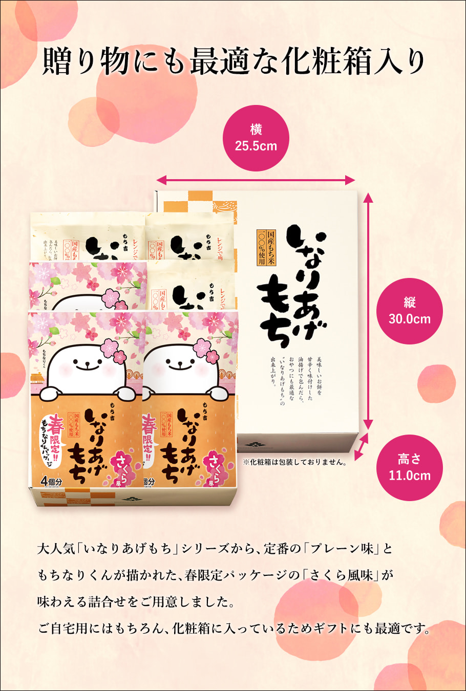 (※期日指定4月30日までお届け可)いなりあげもち 化粧箱(プレーン・さくら風味詰合せ6袋)
