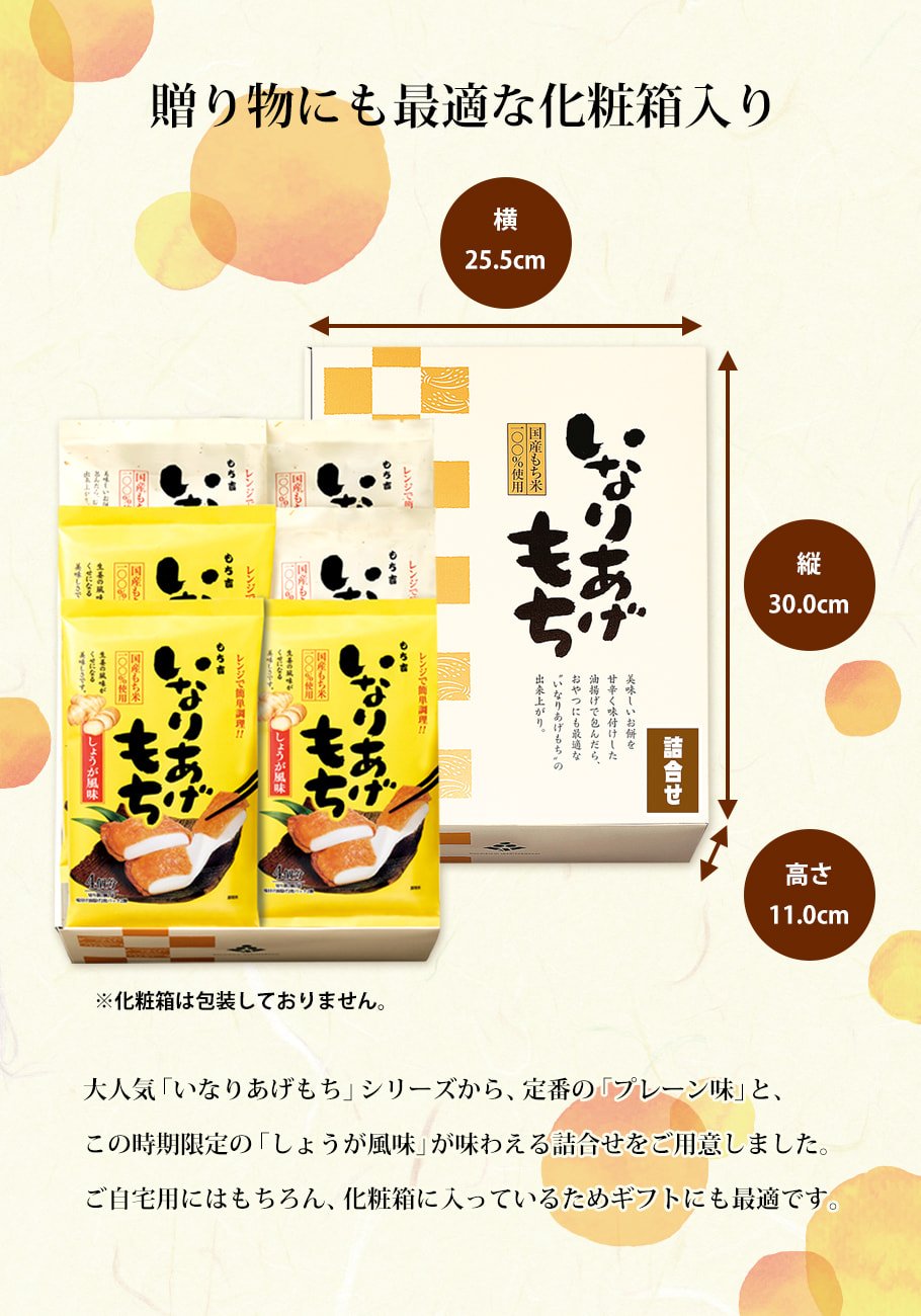 (※期日指定11月22日までお届け可)いなりあげもち 化粧箱(プレーン・しょうが風味詰合せ6袋)