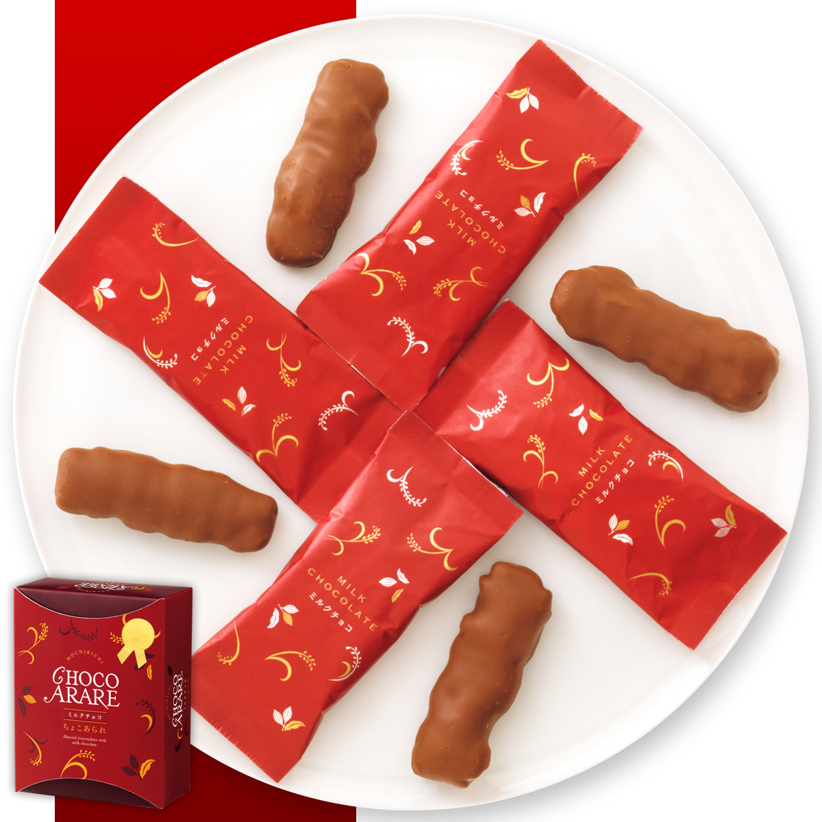 ふっくらさっくり食感あられ×まろやかなミルクチョコ♪ 今なら特別仕様バレンタインシール付き!!