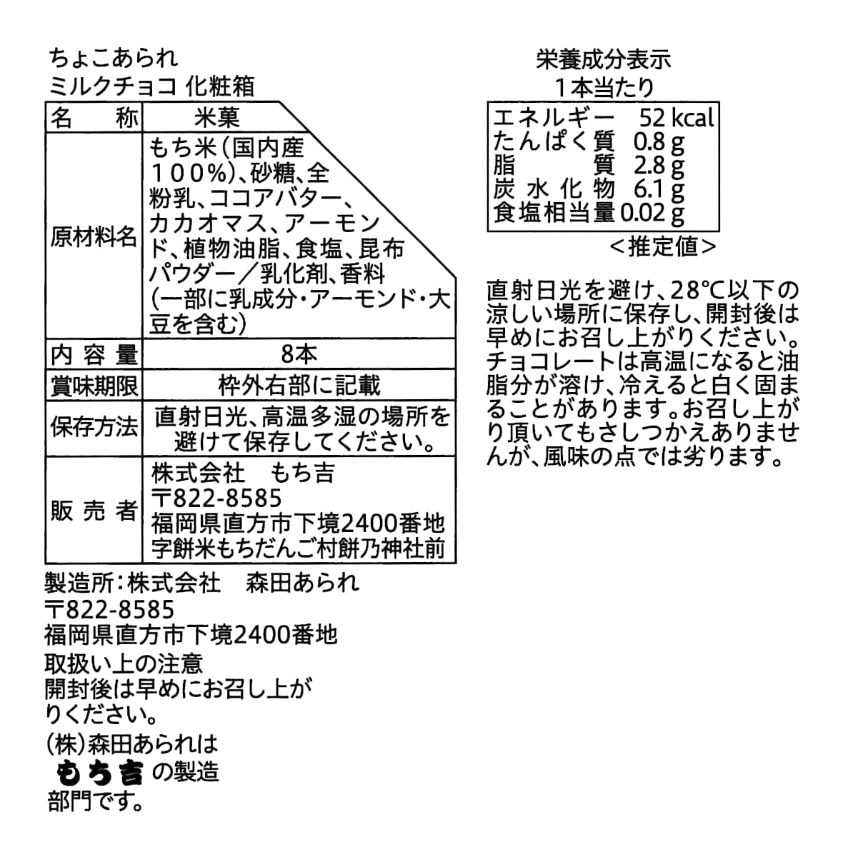 (※期日指定2月14日までお届け可)ちょこあられ 化粧箱 ミルクチョコ ~バレンタインシール付