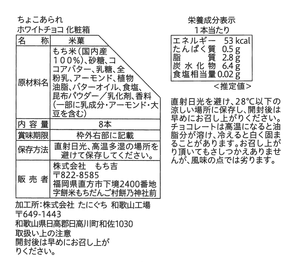 (※期日指定2月14日までお届け可)ちょこあられ 化粧箱 ホワイトチョコ ~バレンタインシール付