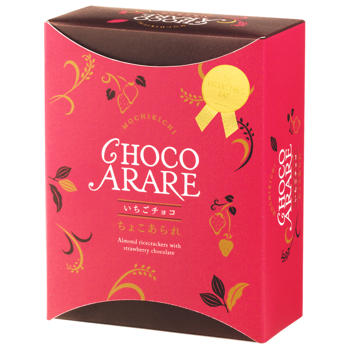 ふっくらさっくり食感あられ×程よい酸味のいちごチョコ♪ 今なら特別仕様バレンタインシール付き!!