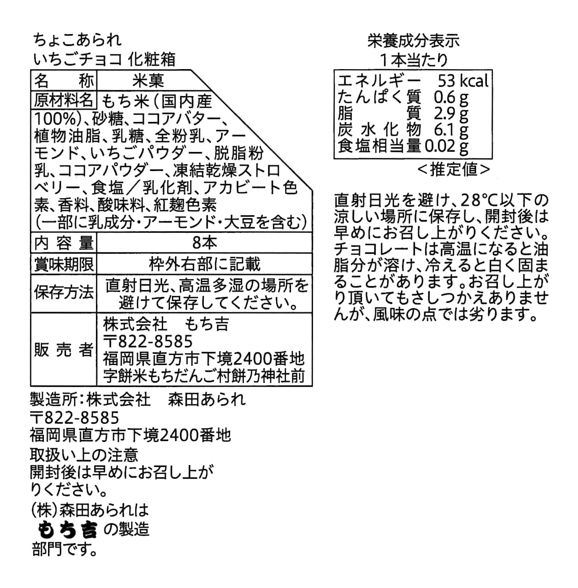 (※期日指定2月14日までお届け可)ちょこあられ 化粧箱 いちごチョコ ~バレンタインシール付