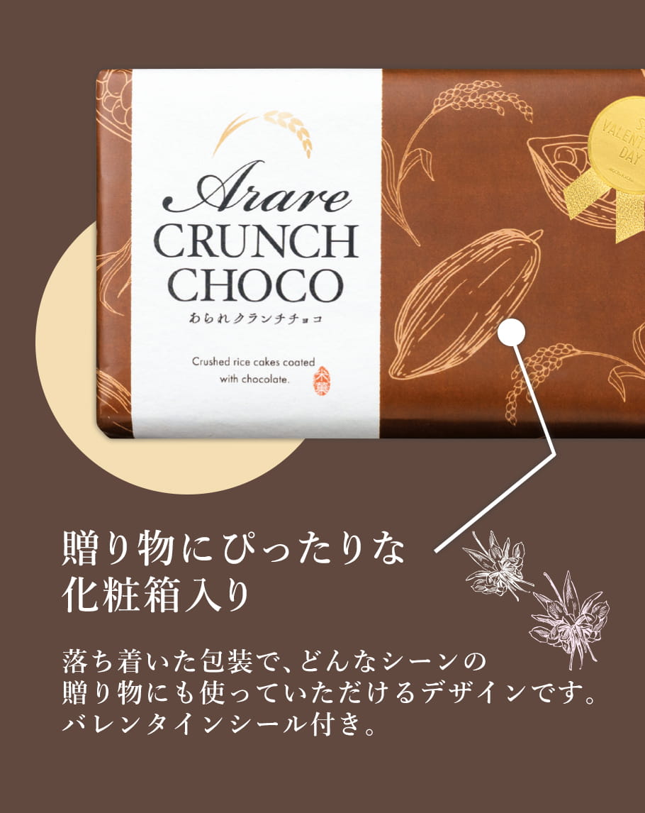(※期日指定2月14日までお届け可)あられクランチチョコ 化粧箱 ~バレンタインシール付