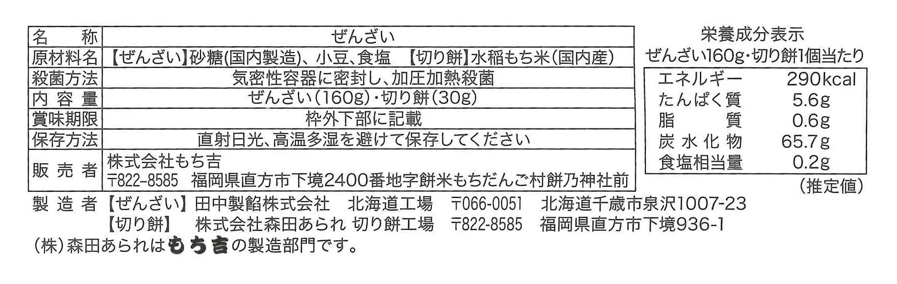 ポスト投函タイプでもち吉人気「もち吉 ぜんざい」を気軽に楽しめるセット