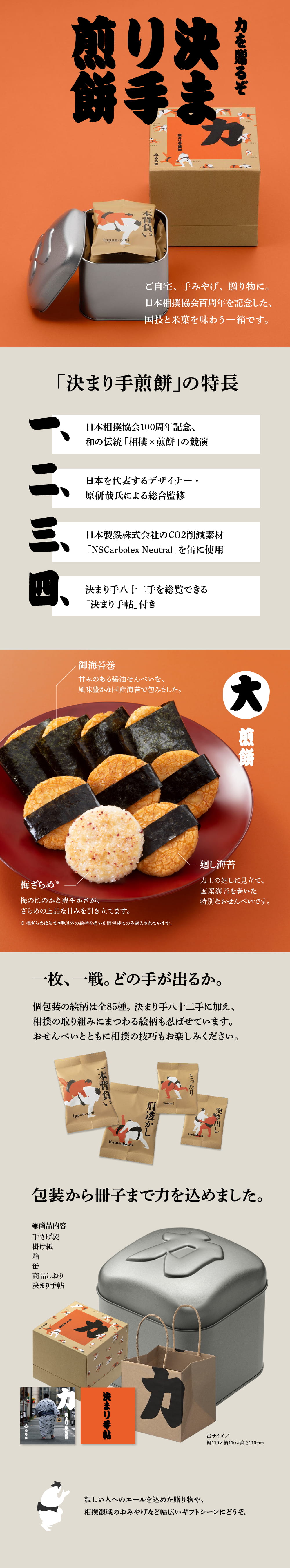 日本相撲協会100周年を迎えた今年、もち吉がお届けする記念缶
