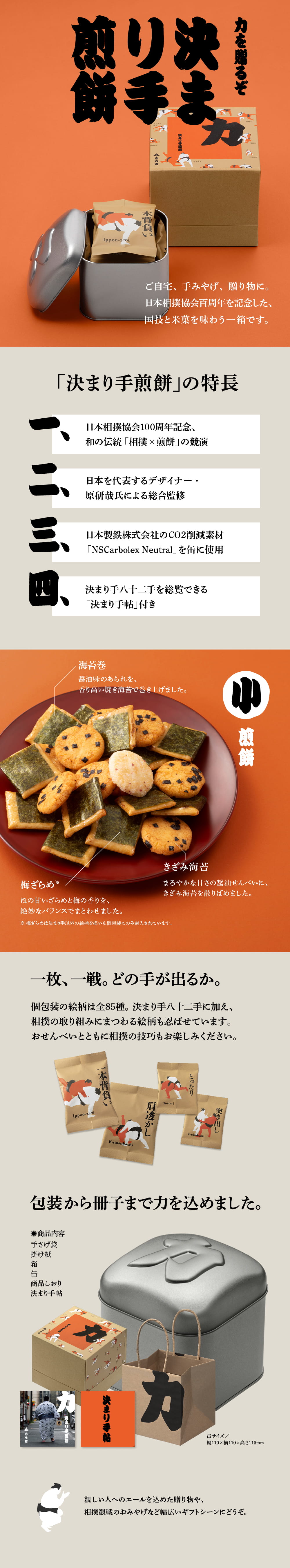 日本相撲協会100周年を迎えた今年、もち吉がお届けする記念缶