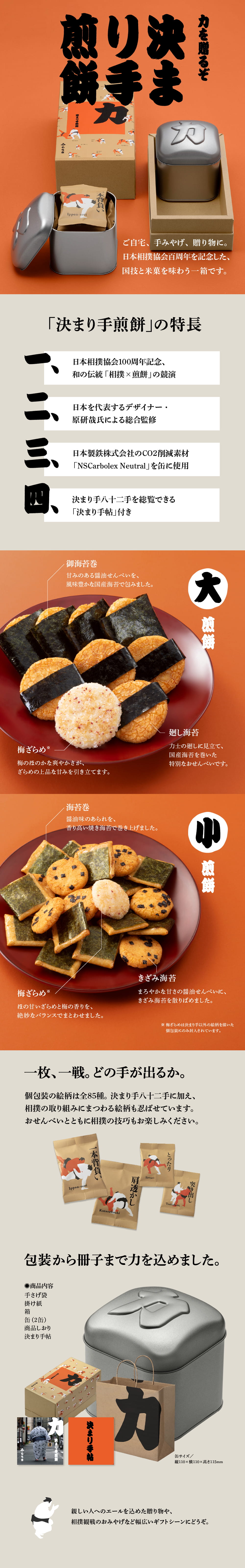 日本相撲協会100周年を迎えた今年、もち吉がお届けする記念缶